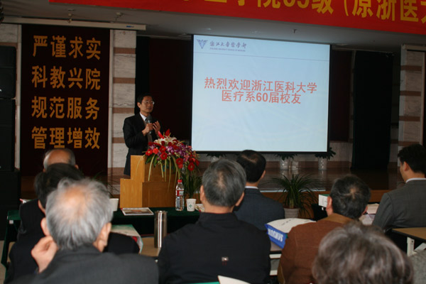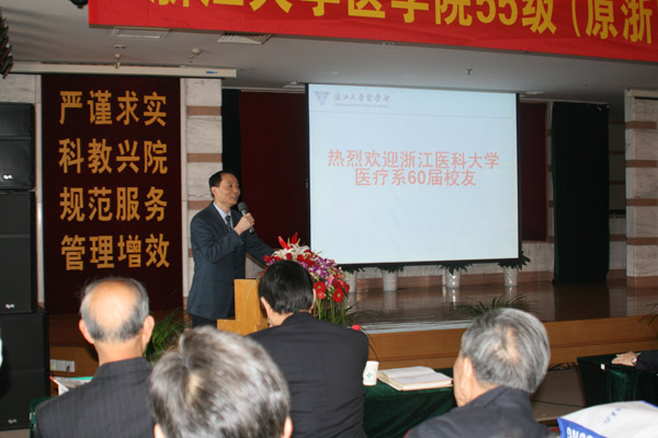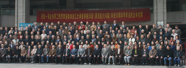 2010年4月17日,阳光明媚,春意盎然,医学部60届约250名校友从世界各地赶来,参加在附属一院多功能厅举行的“浙江医科大学医疗系60届毕业五十周年”活动。