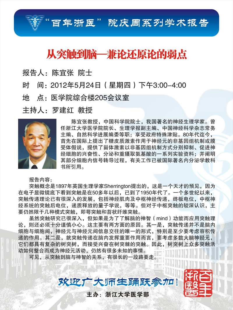 “百年浙医”院庆周系列学术报告——陈宜张院士学术报告
